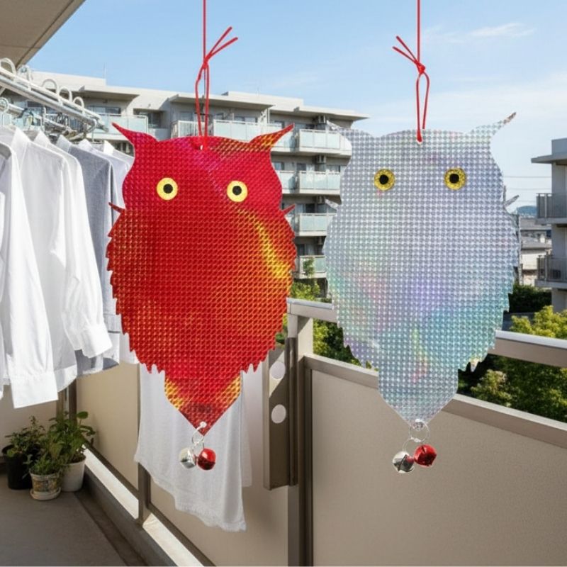 吊るすだけ!ベランダ・畑を守るフクロウ型バードガード